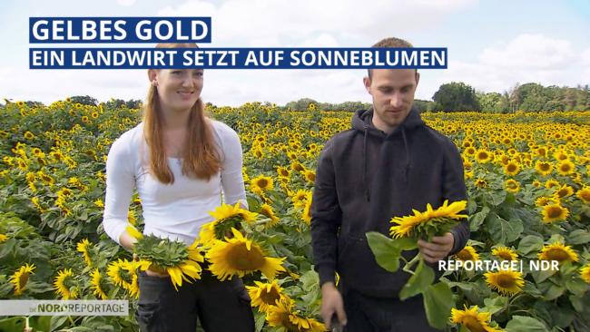 Reprtage | NDR Landwirt Tim Jüchter aus Ganderkesee versucht sein Glück mit dem Anbau von Sonnenblumen. Der Klimawandel mit langanhaltenden Trockenperioden, aber auch immer stärkeren Unwettern stellt ihn zunehmend vor große Herausforderungen. Die Sonnenblume könnte dabei eine wirtschaftlich interessante Alternative werden, denn sie kommt mit großer Hitze und wenig Wasser besser klar als viele andere…
